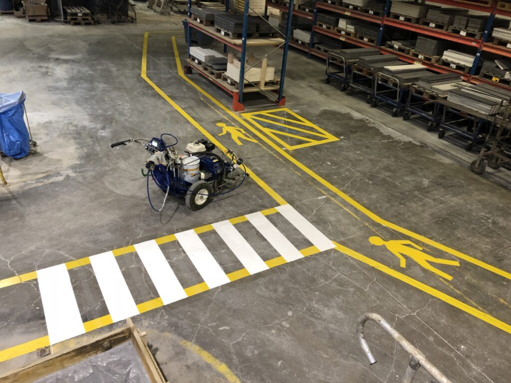 Vi utför linjemålning med 2 komponent polyurethanelack 2 K färgen är mycket slitstark och lämpar sig bra till trucklinjer och gångbanor inom industri och logistik.